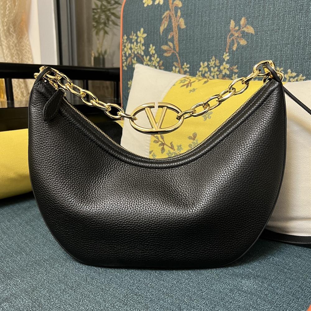 Small model 2080A Li WenGARAVANI VLOGO MOON small chain leather HOBO handbag Thanks to a chain and detachable leather shoulder straps this handbag can be worn on the shoulder or carried by handGold tone chains and accessoriesDetachable leather shoulder strapZipper closureSoft sheepskin lining wit .#fendi benzema,#shuang li miu miu #valentino bag #2081A #Litchi grain #HOBO handbag