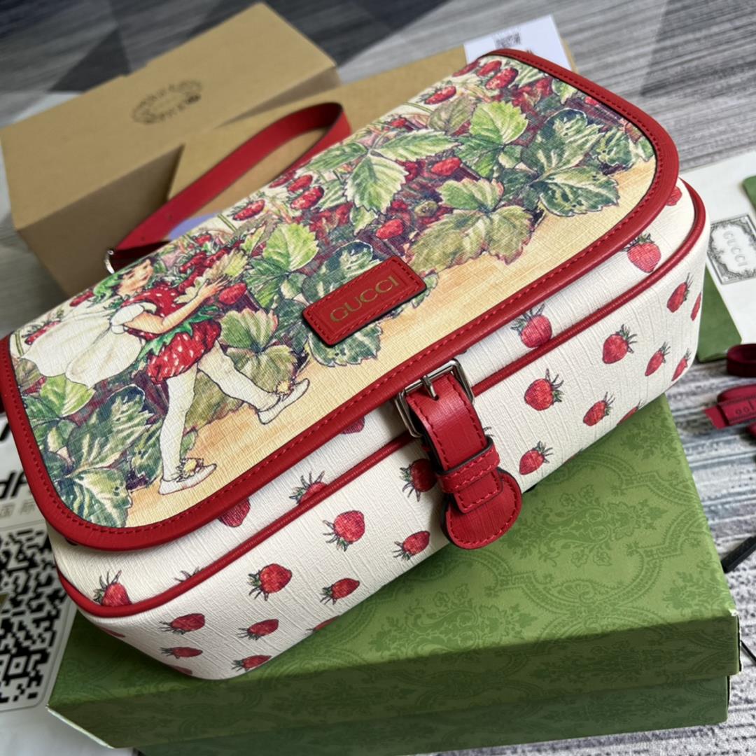 . Equipped with a full set of counter green packaging G G children's Messenger bag British illustrator Louis Wain's green Supreme canvas printed with pink flowers, brown piping, hypoallergenic palladium accessoriesModel 664143Size 29x 19x 8.4Color red strawberry fairy print.