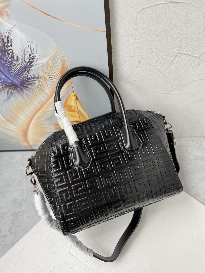French GIVENCHY price adjustment 199808550 Aintong Embossed Letter New Handbag ClassicMINI ANTIGONA LOCK BAG IN BOX LEATERZipper closure. Snow Silver Hardware,Pentagon patch, embossed 4G emblem with embossing effect. Detachable leather shoulder strap. Silver embellished metal details. There is a flat pocket and a zipper pocket inside. Canvas cotton lining.Color blackSize Medium 28cm
