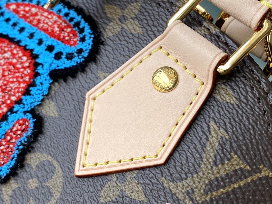 M4642853152 embroidered flowerThis LV x YK Alma BB handbag interprets the face theme of x Yayoi Kusama's new cooperation series, explores the My Eternal Soul series paintings created by this famous Japanese artist since 2009, presents fish and grotesque face patterns with colorful prints and embroidery, and injects artistic imagination into classic design.Detailed features 23.5 x 17.5 x 11.5 cm E68720