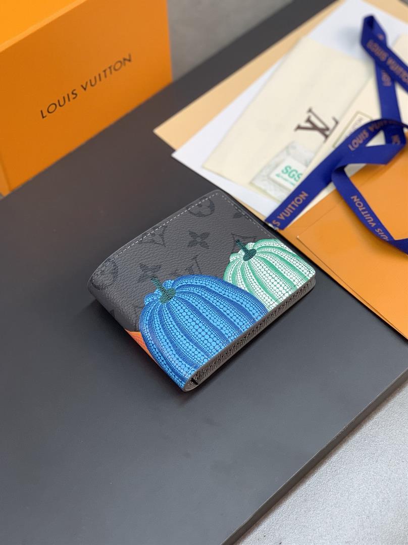 M82101 Pumpkin LV x YK Short ClipThis LV x YK pocket wallet is from the x Yayoi Kusama cooperation series. It depicts colorful pumpkin patterns for the Monogram Eclipse Reverse canvas, reproduces the symbol of warmth and comfort in the eyes of this famous Japanese artist, and injects artistic essence into the functional design. 11.5x9cm in length x height x width. E68240