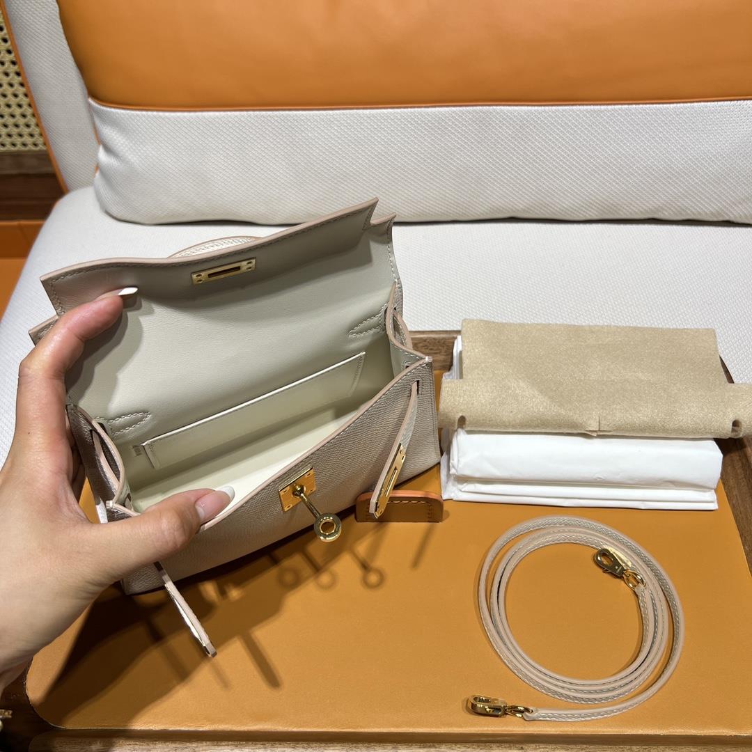 Mini Kelly 19 Kelly Second Generation EPSOM 10 Milk Shake White Craie Gold Button Purchase Level Top Original Factory Restricted Imported Leather 24k Gold Vacuum Electroplating Pure Handmade Wax Thread Sewn Full Set of Top PackagingDescribe that you must not miss the Minikelly's second-generation capacity pack of lipstick powder for daily going out. It is totally useless. You must carry it every day when commuting and living at home. No matter sports style, sweet style or handsome style, it is super perfect to carry elegance and temperament. Whoever looks good is the first choice for entry
