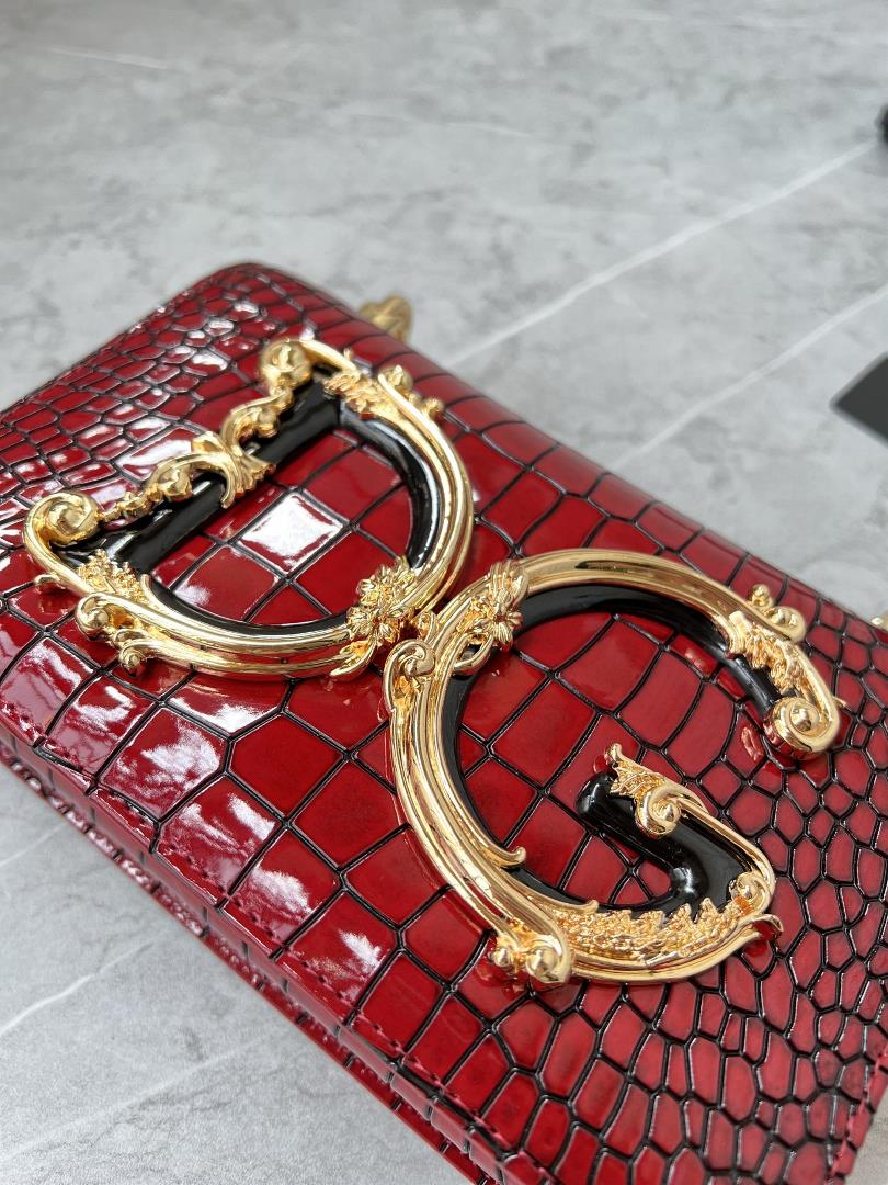 Top grade original single 666622480 new product crocodile pattern wine redFriends with Zp can compare the detailsDG Girls series Mordor crocodile cow leather crossbody bag with elegant and soft accessories, adorned with DG Baroque antique gilded ABS logoThe front flip adopts a double hidden magnetic buckle for opening and closingSliding antique gold plated chain decorationInterior signage Napa leather liningAttach the same theme logo dustproof bagDimensions 14.5 x 21 x 3 cmMade in Italy