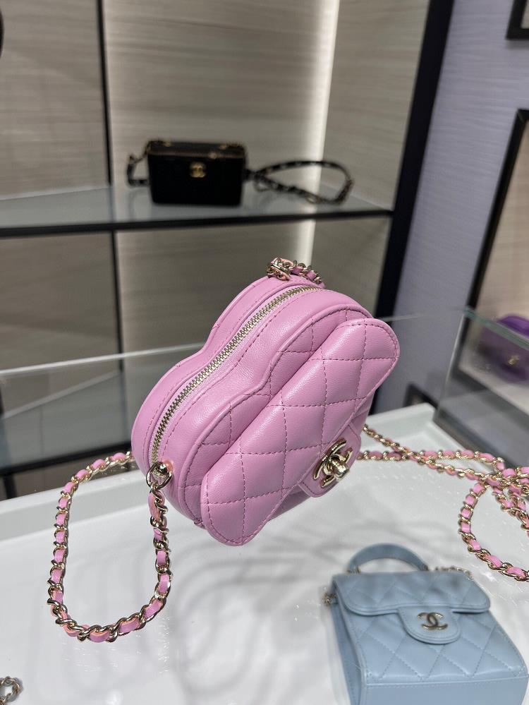chanel 2022s New SpringSummer Love Bag Peach Heart Bag Sheepskin Light Gold Hardware Model AS2784Y Size 13x12x5 Small professional luxury fashion b