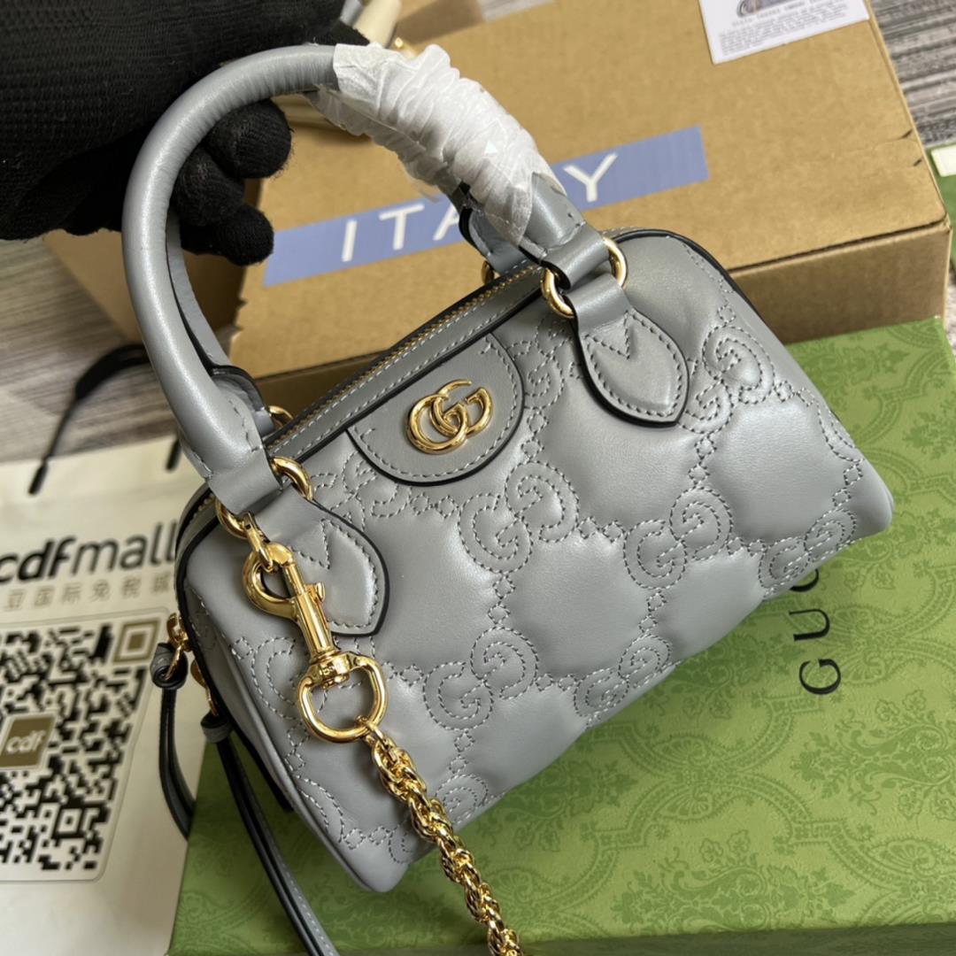 . Equipped with a complete set of counter green packaging, G Gmatelasss leather chain shoulder backpack UM8HG continues to stand out in a unique way. With its ultra soft surface treatment, the iconic material is once again envisioned as part of Gucci Love Paradise, with textured geometric patterns. This design presents a contemporary approach to the 1990s logo trend, which appears in the latest series of the House of Representatives. Here, it appears in the green shadow of Minimalism. Grey GG matteless leather, gold hardware dual G .Model 702251 .Size 191311cm .The color is gray embossed G full leather.(professional luxury fashion brand agent business)