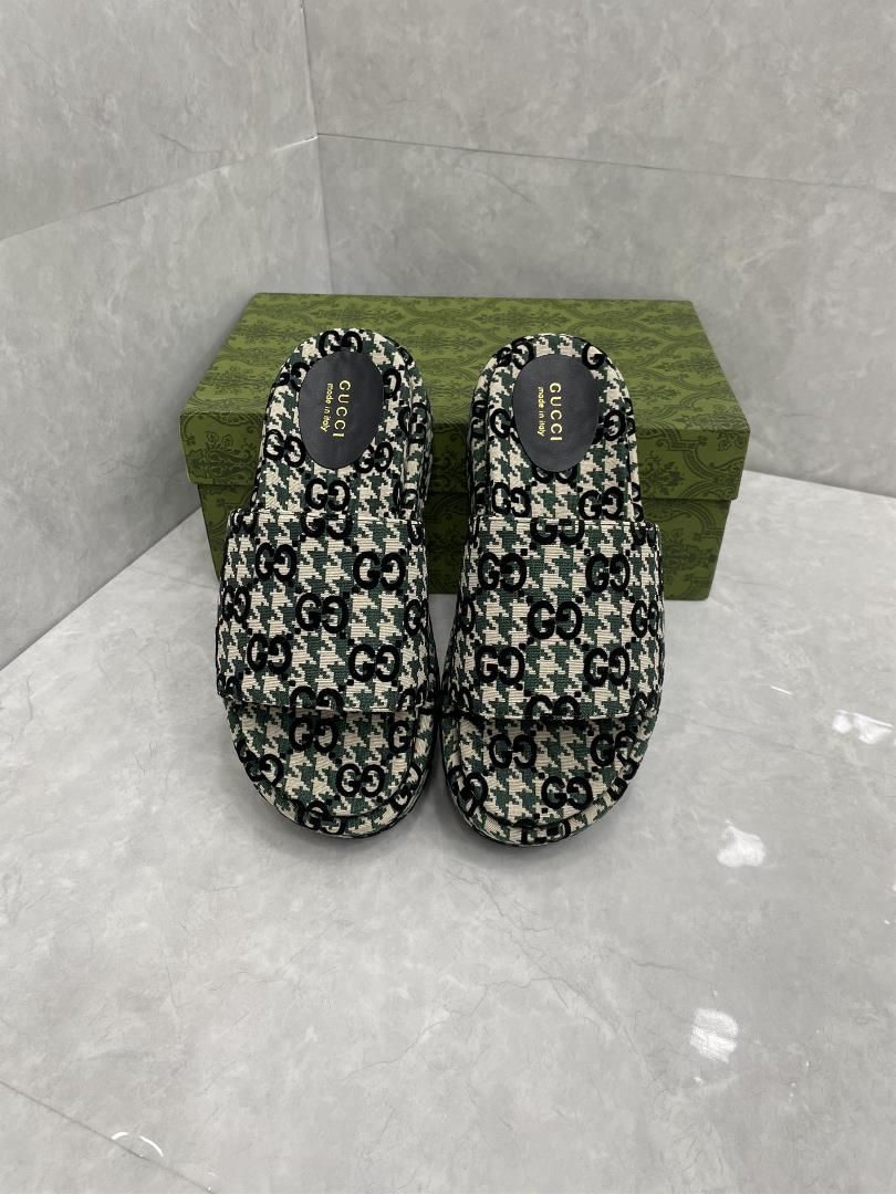 GUCCI New Women's Large GG Waterproof Platform SlippersAs an iconic symbol of the brand, the logo enriches the design in a brand new and unexpected way. Behind each logo lies the brand's tradition and value, a timeless medium that can be worn repeatedly. Following the concept of constant change and experimentation, each series presents different logo iterations. The large GG is a new version of the historical letter combination, defining this double thick baseJumbo GG CanvasSheepskin liningFeminineLow Heel, 1.1 HeightMade in Italy Size 35/44 - professional luxury fashion brand agency business(If you have wholesale or retail intentions, please contact online customer service, there will be unexpected surprises.) No._Zn6hqSkKNLP2UnbmVrXDuM6T8Ug4-L7w-_dnSTJfDnHDDU3HAoPNJOweLRAQSvsOpOuuWQezw-07-060240