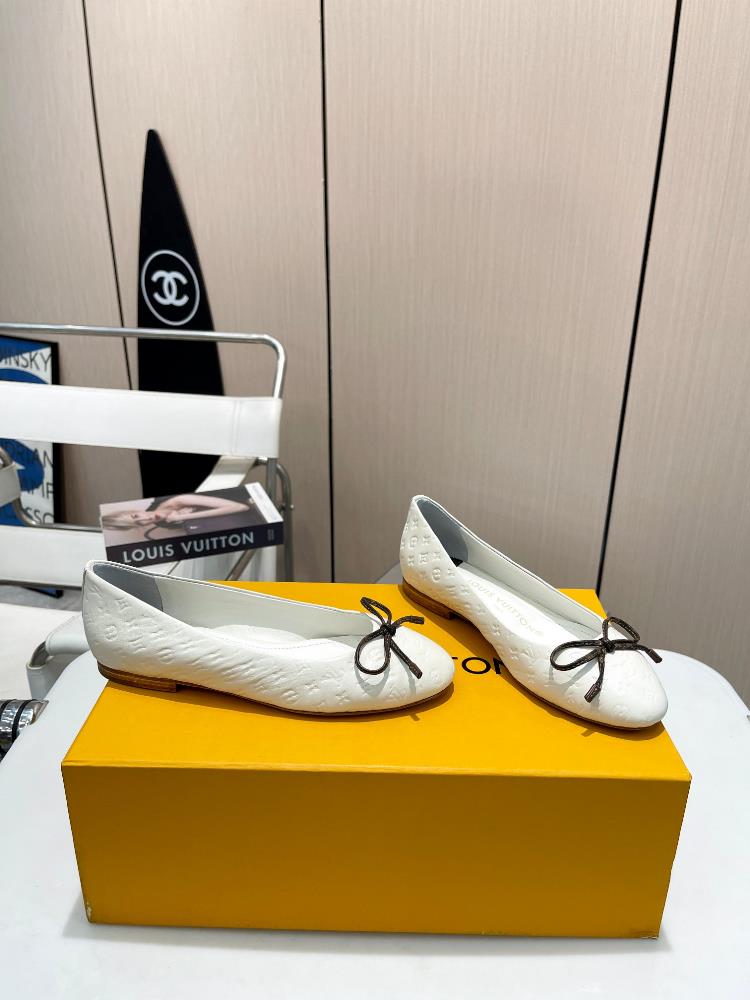 LV Louis Vuitton New Presbyopia Bow Ballet Flat Sole Single Shoe Embossed Shallow Cut ShoesTop quali