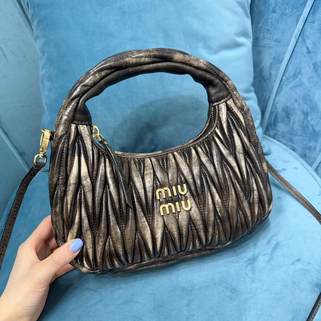M family 5BC125 MiuMiu's new MiuWander handbag is made with imported lamb skin classic brand iconic Matelasse texture embroidery, retro frosted hardware, and the use of rounded curves to retain the playful feeling it should have. The overall shape of the bag is firm and stylish, full of personality, can be sweet or salt, and the capacity can be light. Almost every major fashion champion has one, with a variety of colors, including black, milk white, peacock blue, sunlight yellow, cherry blossom pink, and bright red. The size is 23X13X7, Equipped with original packaging 1080089(professional luxury fashion brand agent business)