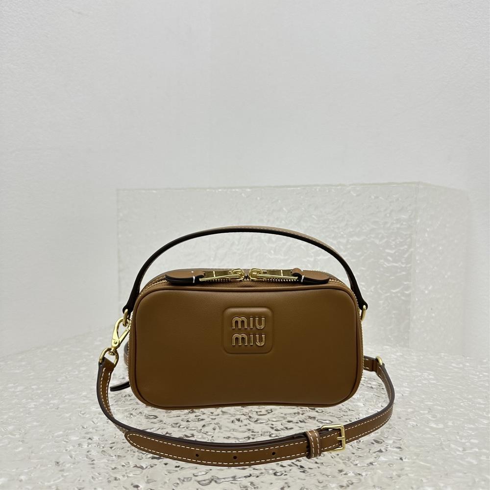 miumiu Full skin brown AutumnWinter series handheld crossbody camera lunch box bag Miao Miaos momentum is strong The new lunch box bag is made of b