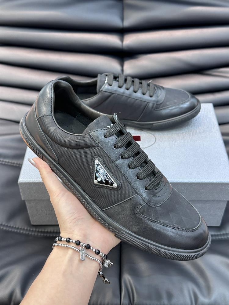 Prada mens highend boutique simple casual sports shoes made of leather and nylon create an unexpected texture contrast A unique design is crafte