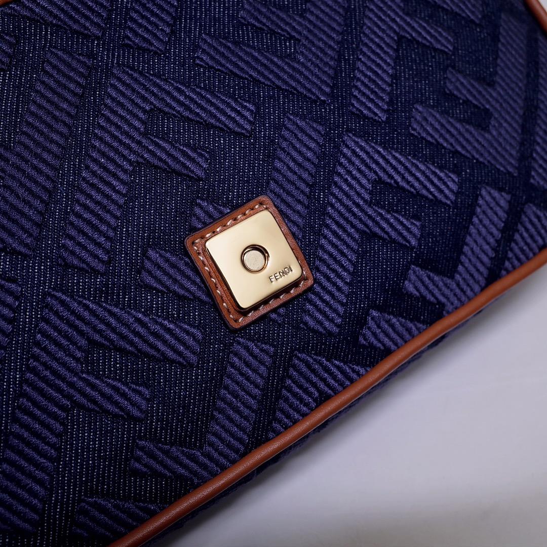 The FEND1 iconic Baguette Medium handbag features a flip design and FF magnetic buckle. The lining is equipped with a zipper pocket. Equipped with detachable shoulder straps for carrying or crossbody. Blue Denim material, decorated with FF pattern embroidery. Decorated with natural leather details. Pequin satin shoulder strap. Size 26615cm. six thousand two hundred and twenty-one(professional luxury fashion brand agent business)