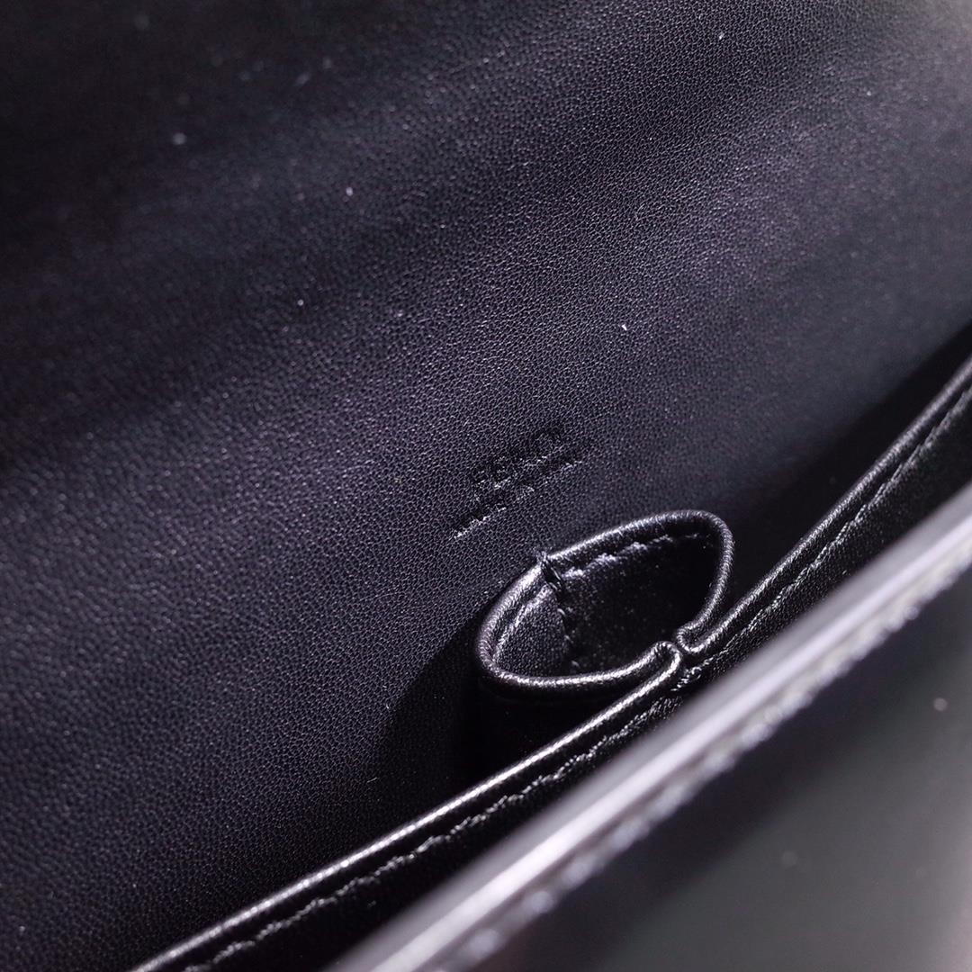 The FENDI handbag is made of black brushed leather material, decorated with large F metal accessories and a chain. insideWith matching tone leather lining, it is equipped with handbag mirror, two pockets and lipstick compartment. FlippingThe cover is adorned with metal Fendi Roma lettering, paired with a vintage silver finish metal piece. Equipped withShort chain handle, can be held by hand or hand. Size 23713. eight thousand and seventy-two(professional luxury fashion brand agent business)