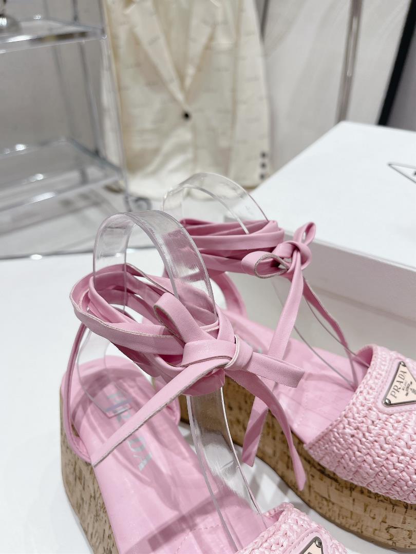 The latest original prada Prada new roman woven wood grain thick soled sandals are released The lat