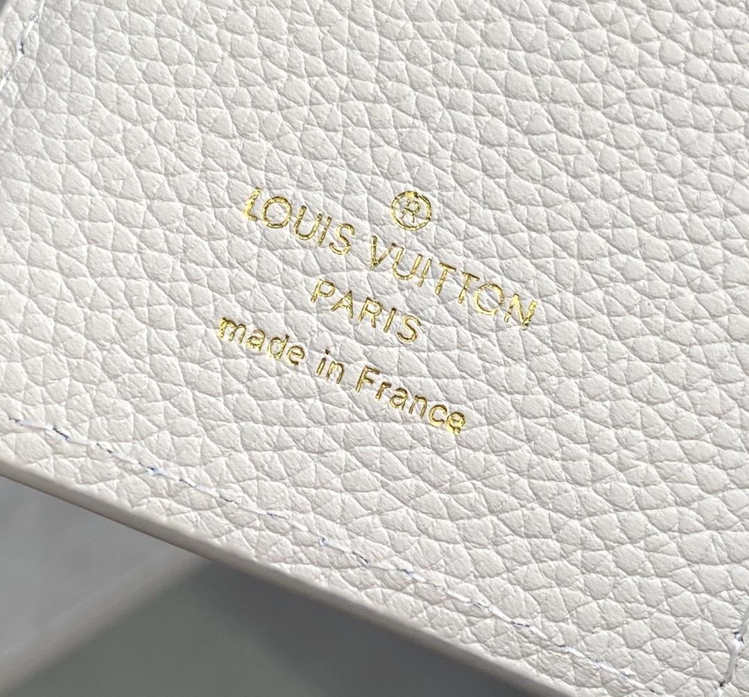 The M81927 white silk printed Cla wallet is made of Monogram Imprente soft grain cowhide and feature