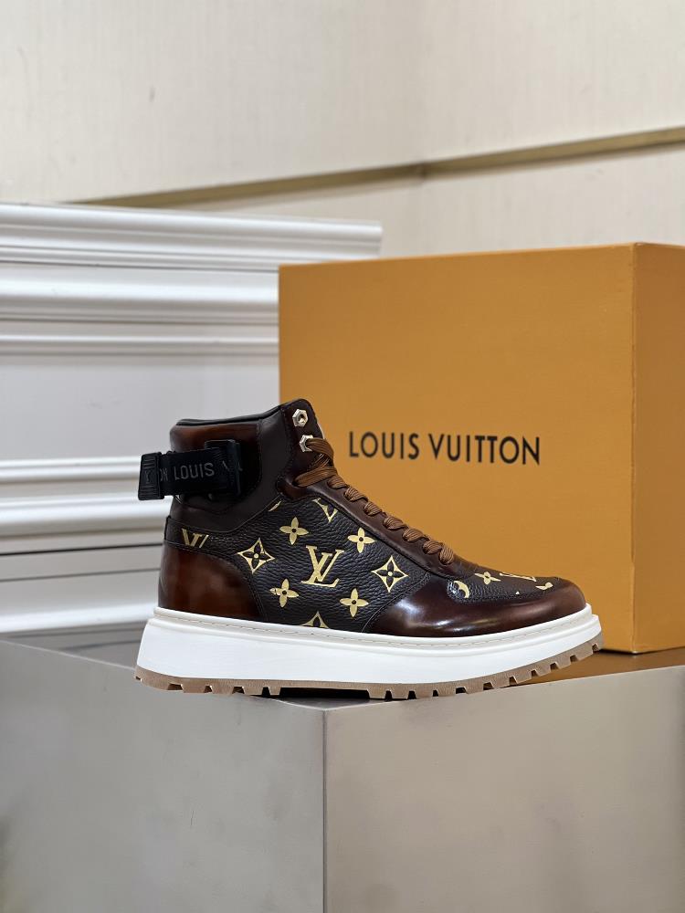 What sets LV Shoes' high top boots apart is their impeccable attention to detail and quality craftsmanship. Each pair is made with the finest materials, ensuring both durability and style. The sleek design and high-quality leather make these boots a versatile addition to any wardrobe. Whether you're dressing up for a night out or keeping it casual during the day, these boots are the perfect choice.