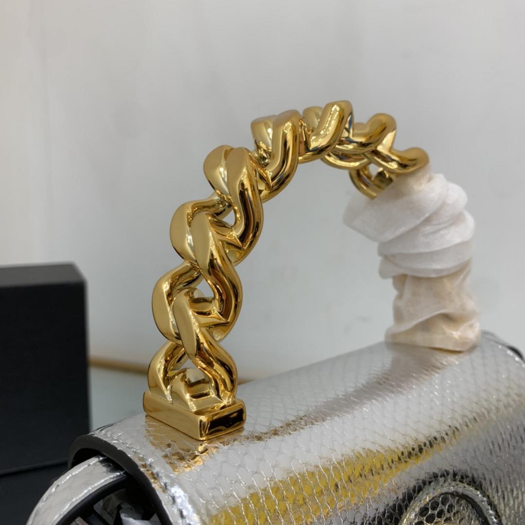 VERSACE Silver SnakeTell the little queen about the modern corner in the early autumn of 2022, and meet Medusa in Tanning with a fashionable attitude. The striking golden Medusa plate and handle add points to the fashion. The central Medusa is quite recognizable. This design is equipped with a fixed chain top handle, and a detachable and adjustable shoulder strap is also available. Three internal card slots. Model 1066 Size 16x6x12cm(professional luxury fashion brand agent business)